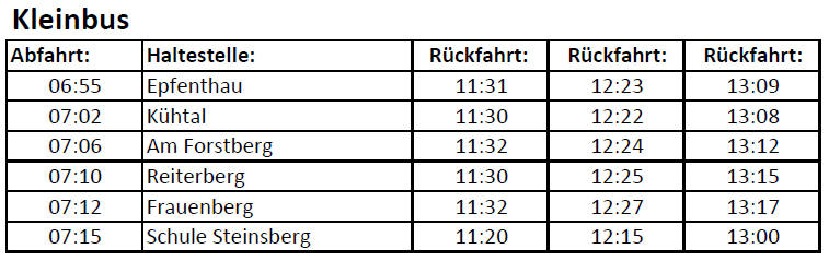 Hier finden Sie alle aktuellen Fahrpläne und Informationen zu den Schulbuslinien sowie den Haltestellen, die unsere Schule anfahren. Wir möchten sicherstellen, dass Ihr Kind den Weg zur Schule und wieder nach Hause reibungslos und sicher bewältigen kann.
