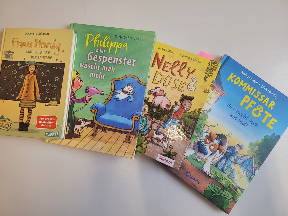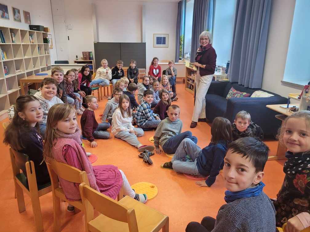 Auch in diesem Jahr kam anlässlich des Welttags des Buches Frau Meier aus der Bücherstube Regenstauf zu uns an die Schule. Frau Meier wählte jeweils altersgerecht passende Kinderbücher aus und stellte diese in vier spannenden Vorlese-Stunden eindrucksvoll vor. Jede Jahrgangsstufe durfte gemeinsam mit Frau Meier in neue Welten eintauchen, Heldinnen und Helden kennenlernen und die Magie des geschriebenen Wortes erleben.